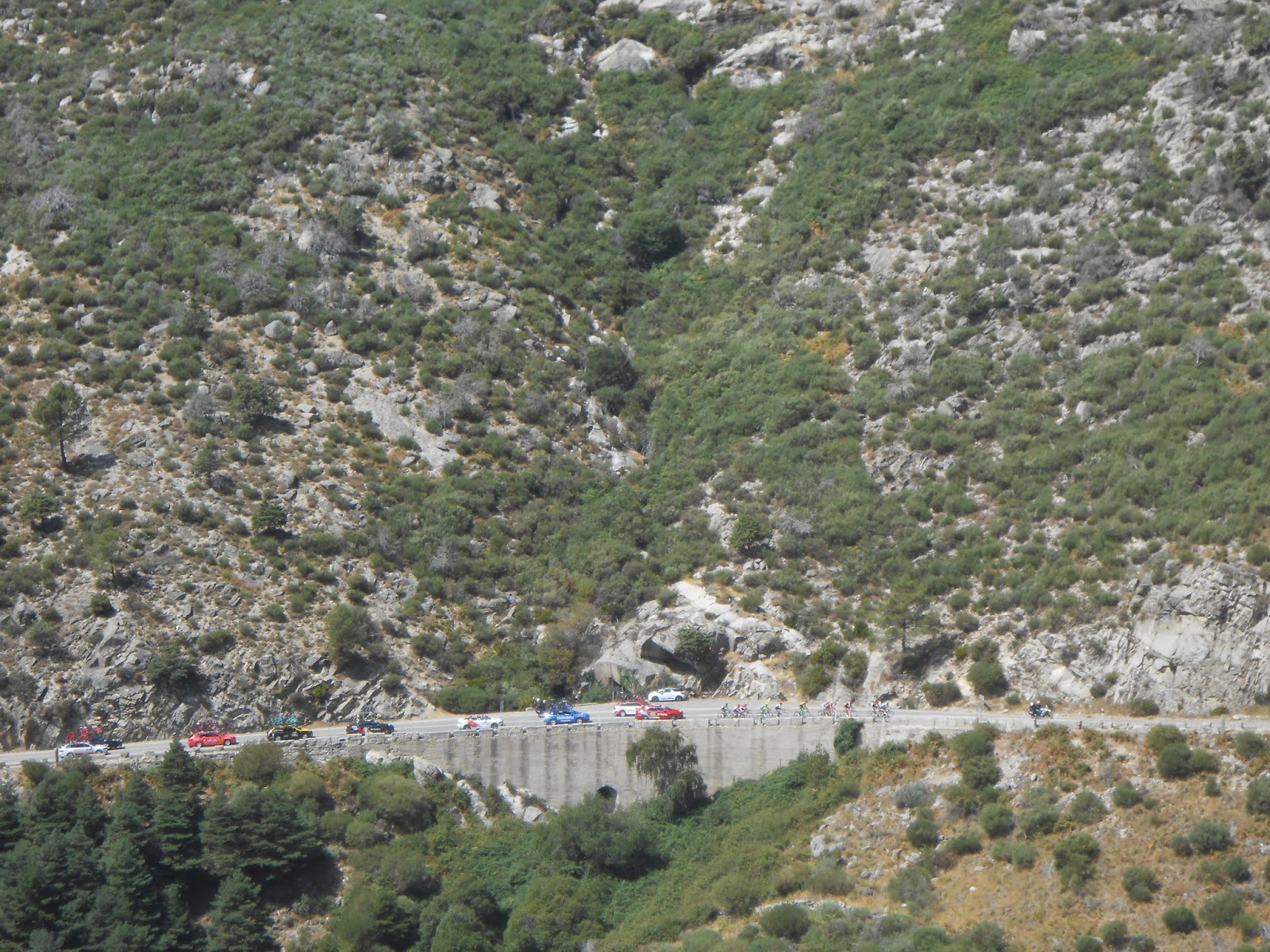 equipos de apoyo y logística particular de los equipos) que desfilan por la empinada carretera.